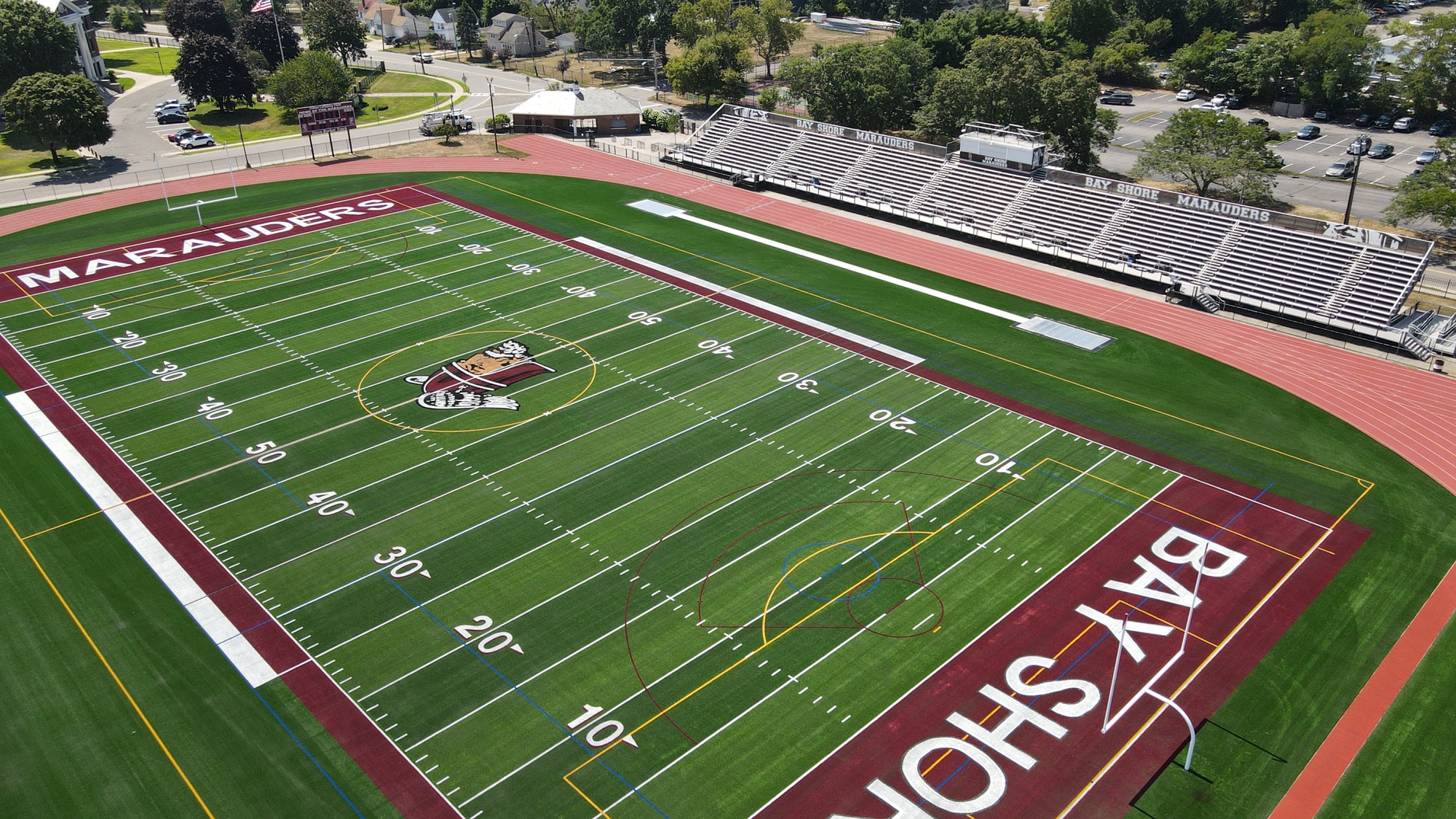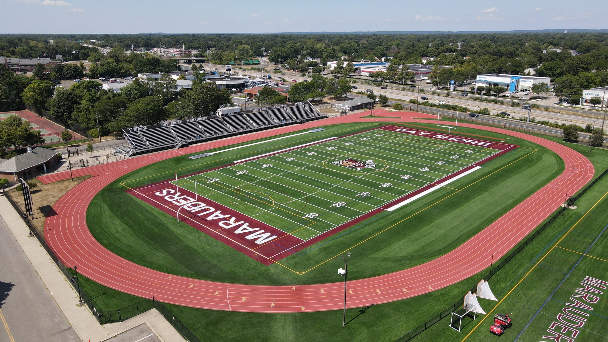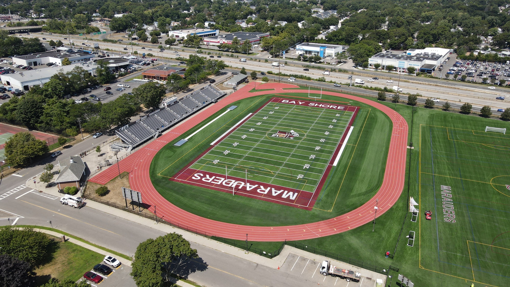 Upgrades were made at Bay Shore High School with the resurfacing of the synthetic turf at the school’s stadium field and practice field. Both fields received new start-of-the-art artificial turf along with updated field markings for multiple sports and logos.