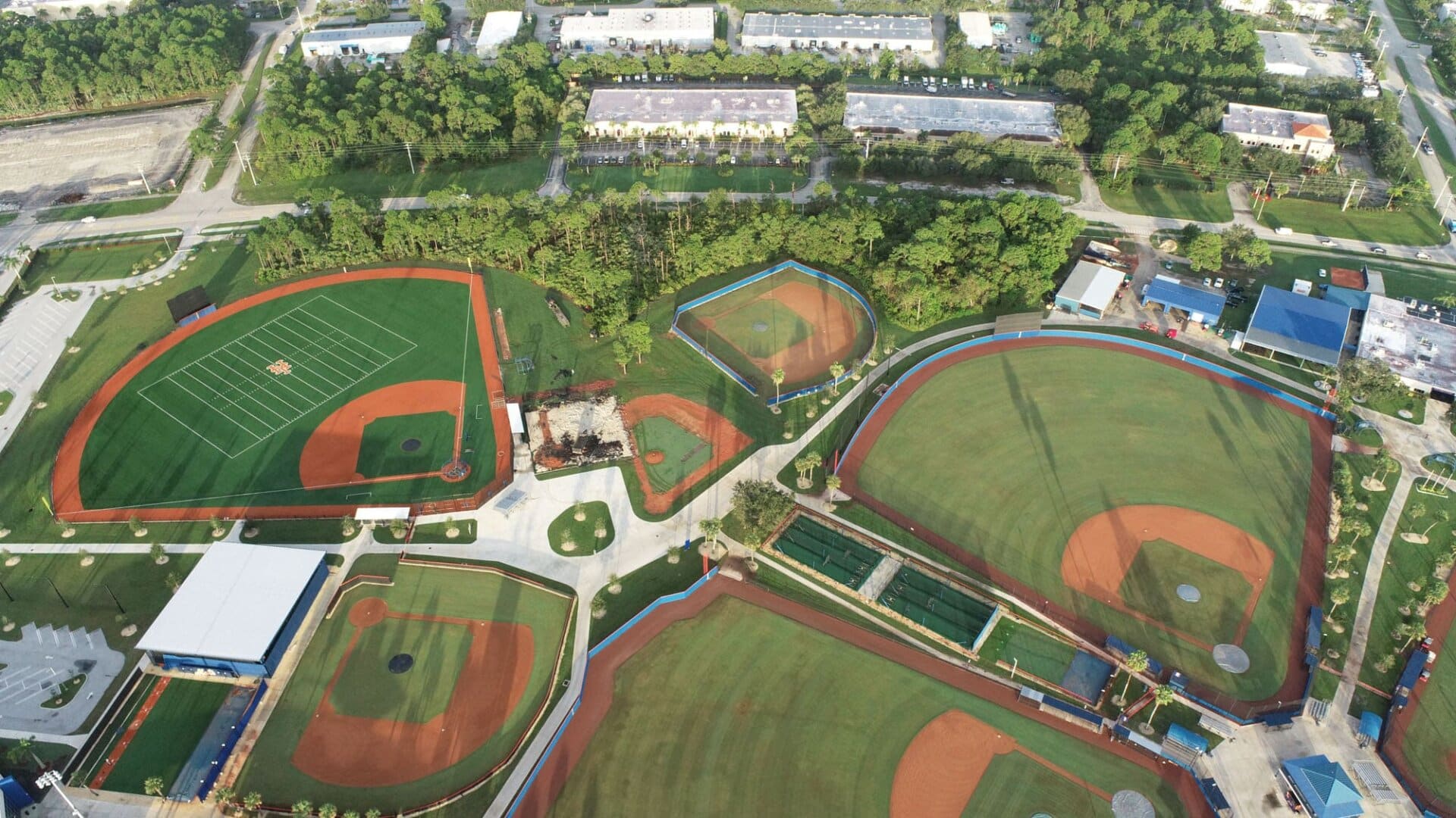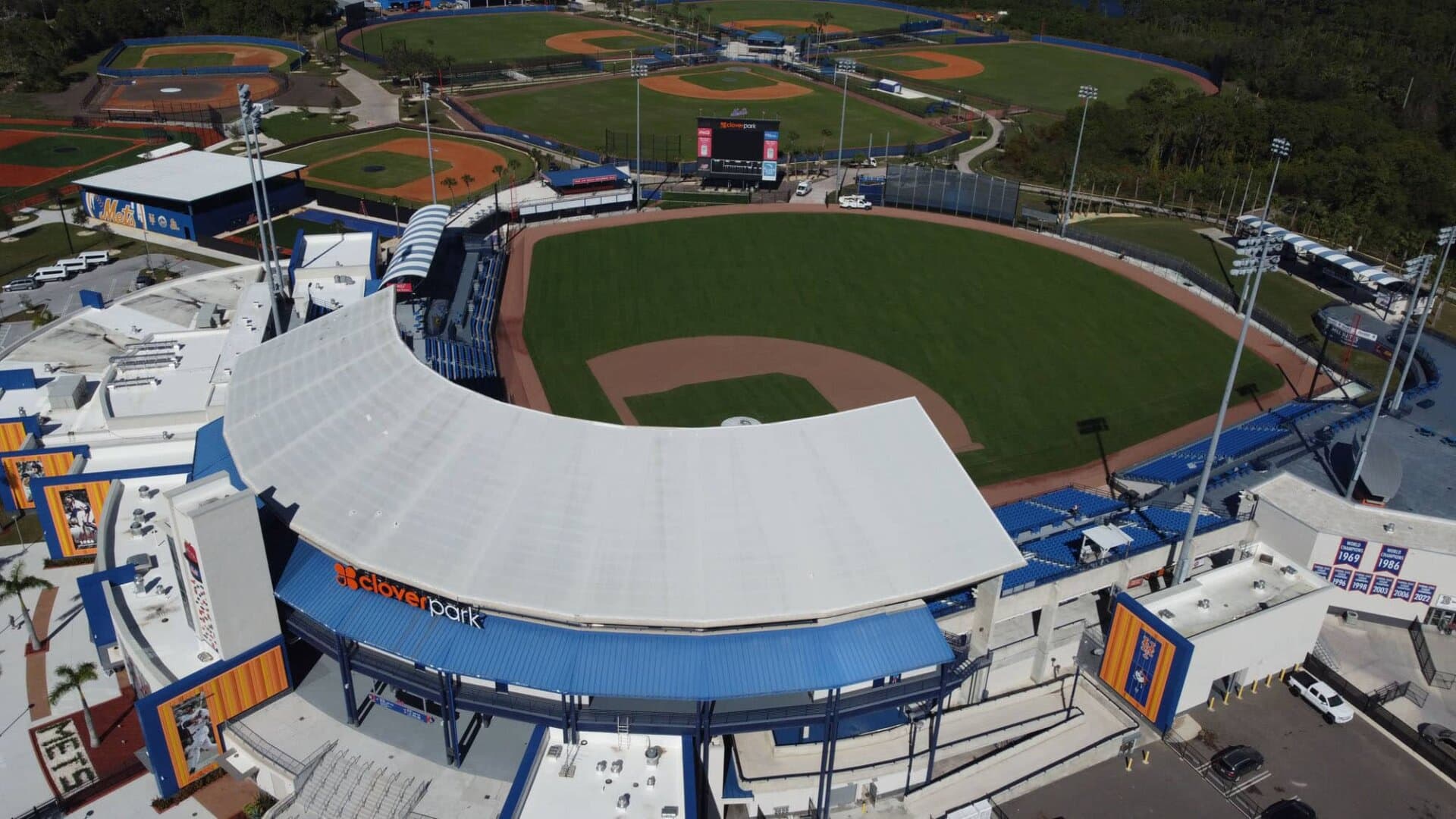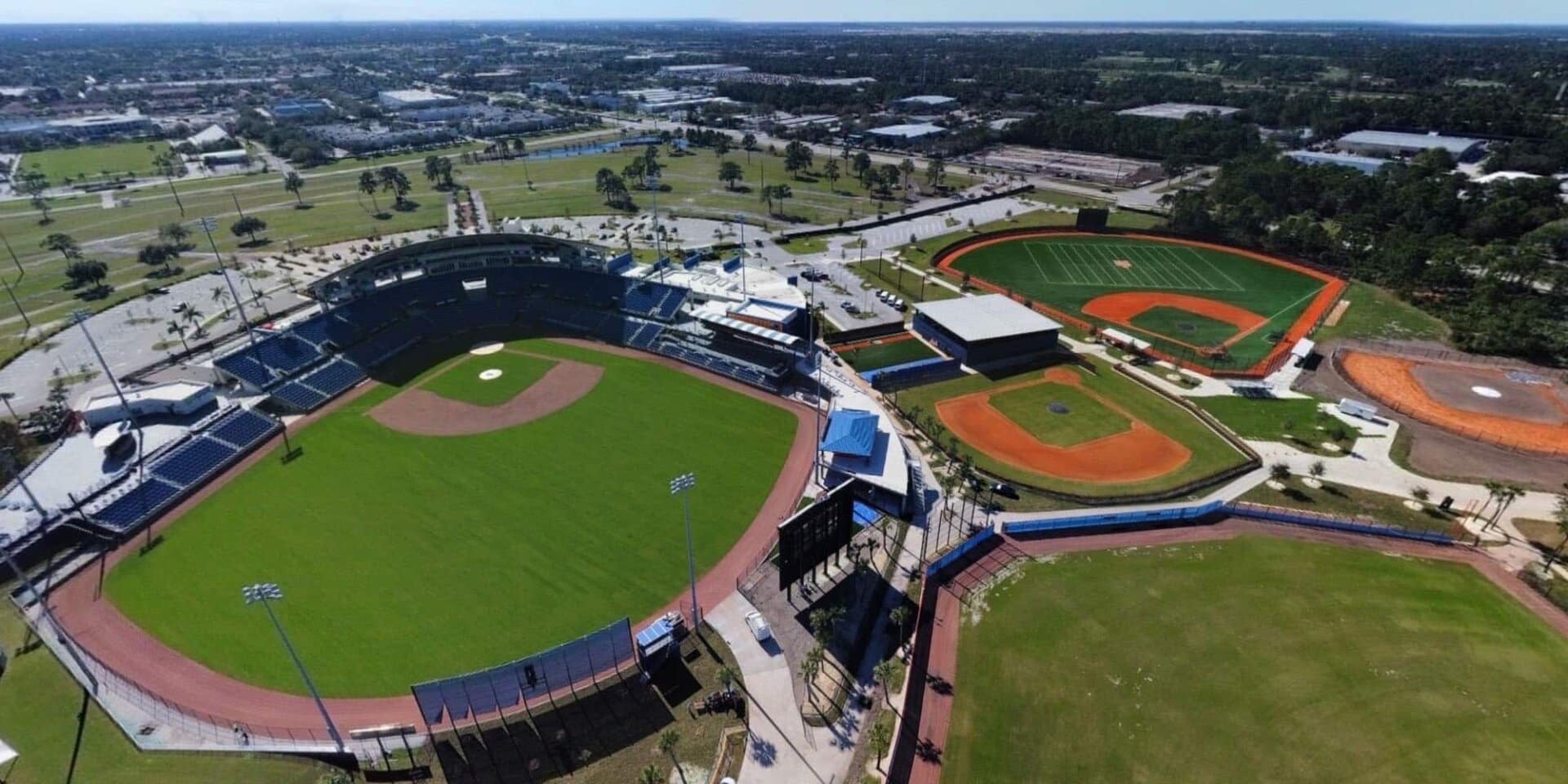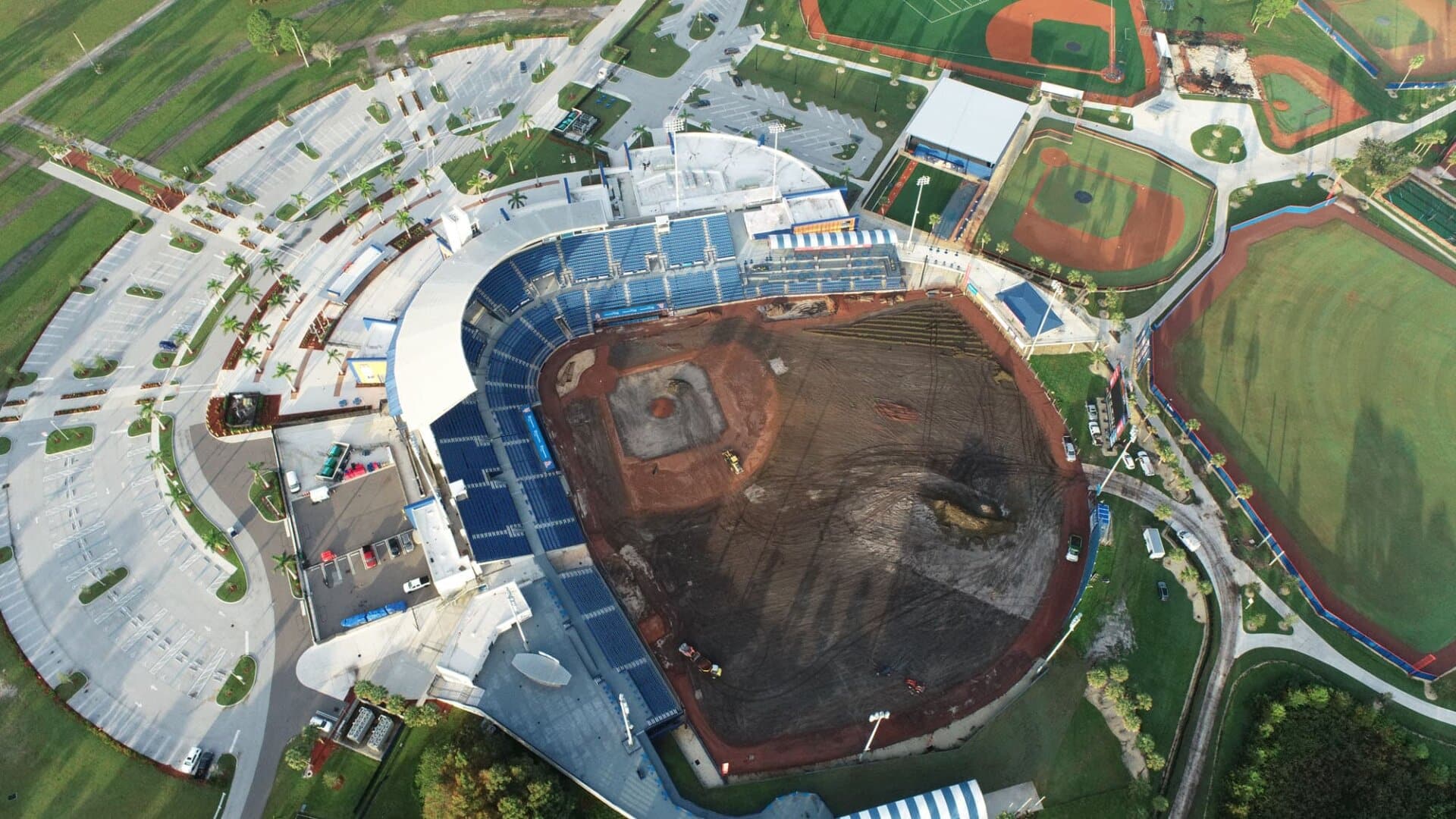 The LandTek Group® successfully executed the NY Mets Clover Park Stadium Renovation Project in Port St. Lucie, FL. This project included several key components, such as the installation of new synthetic turf featuring specialized elements like a home plate halo and the NY Mets logo, as well as a visitors bullpen and porous pad. To ensure optimal drainage, we meticulously implemented a subsurface permeable aggregate base, a sub-drainage piping system, and treated wood edgers and nailers. Additionally, the renovation involved the removal of the existing outfield fence and the installation of a new fence, enhancing both the functionality and appearance of the stadium.