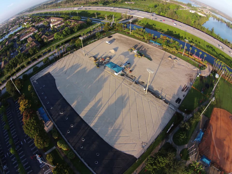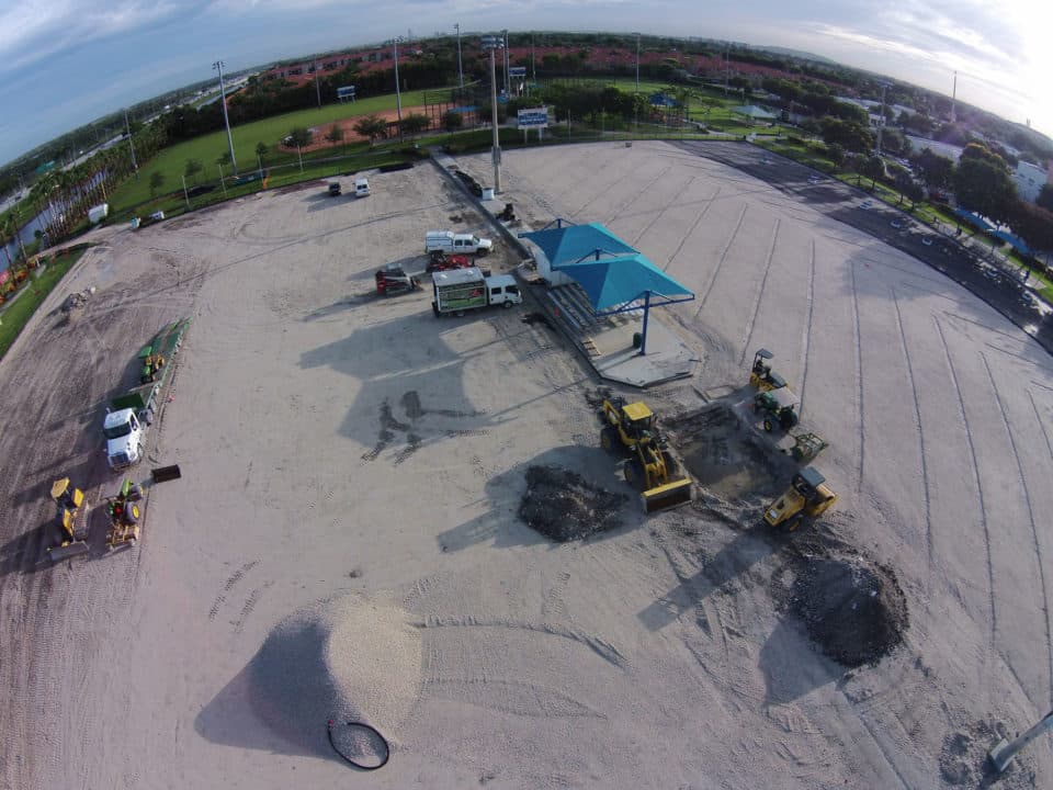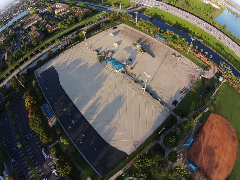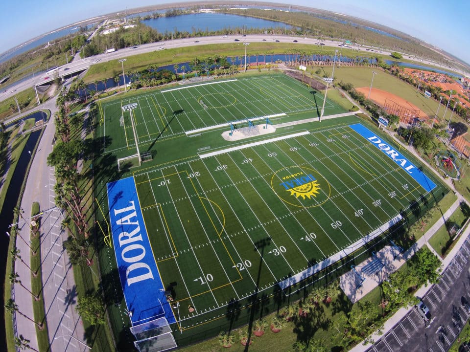 The LandTek Group® was involved in the design-build of two new synthetic turf fields for Doral Meadows Park in Doral, FL. These fields featured inlaid lines for soccer and football, along with colored end zones representing the City of Doral. In addition to constructing the sports fields, the project scope included the installation of new fencing and hardscape elements, such as concrete walking paths.