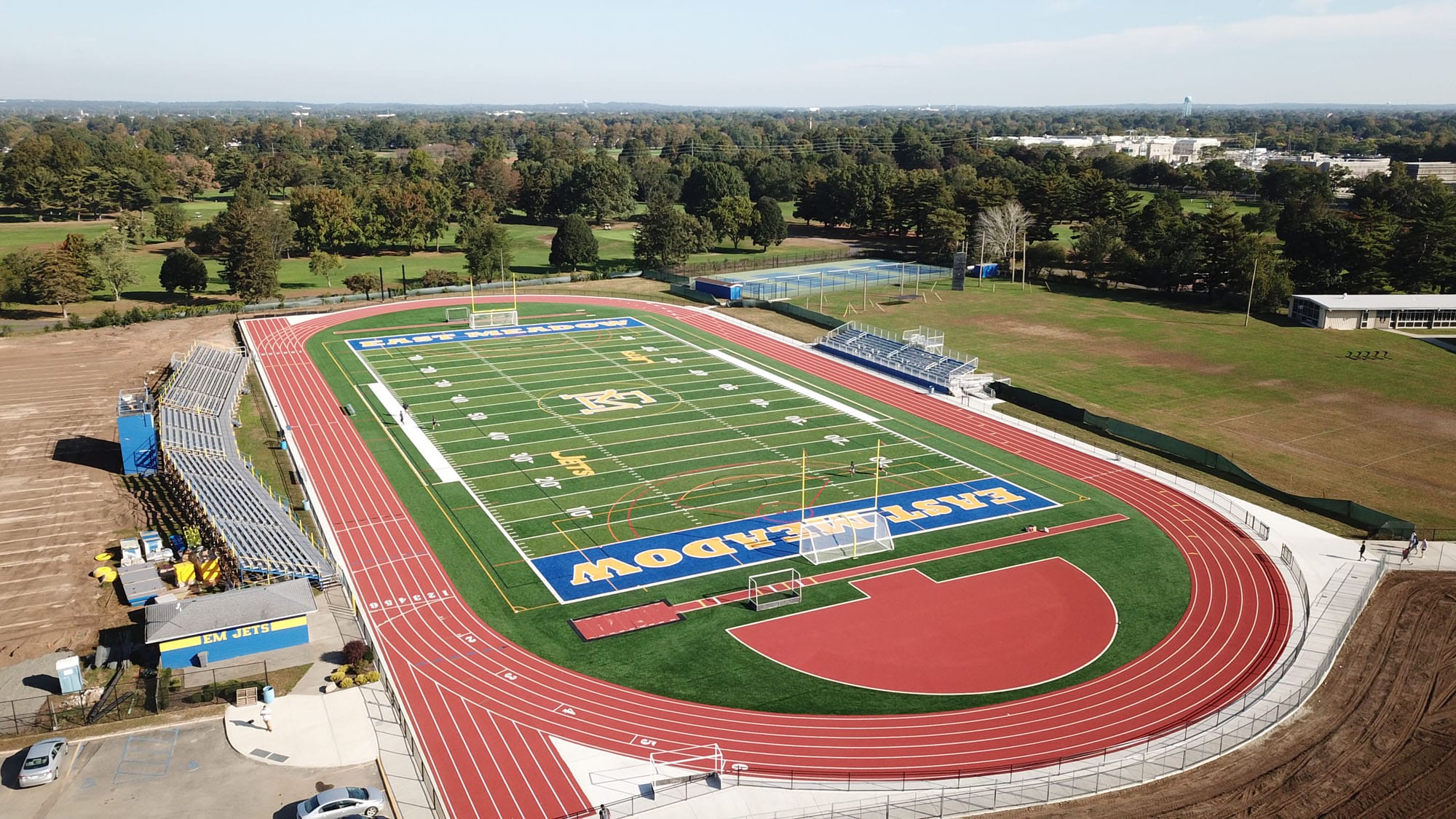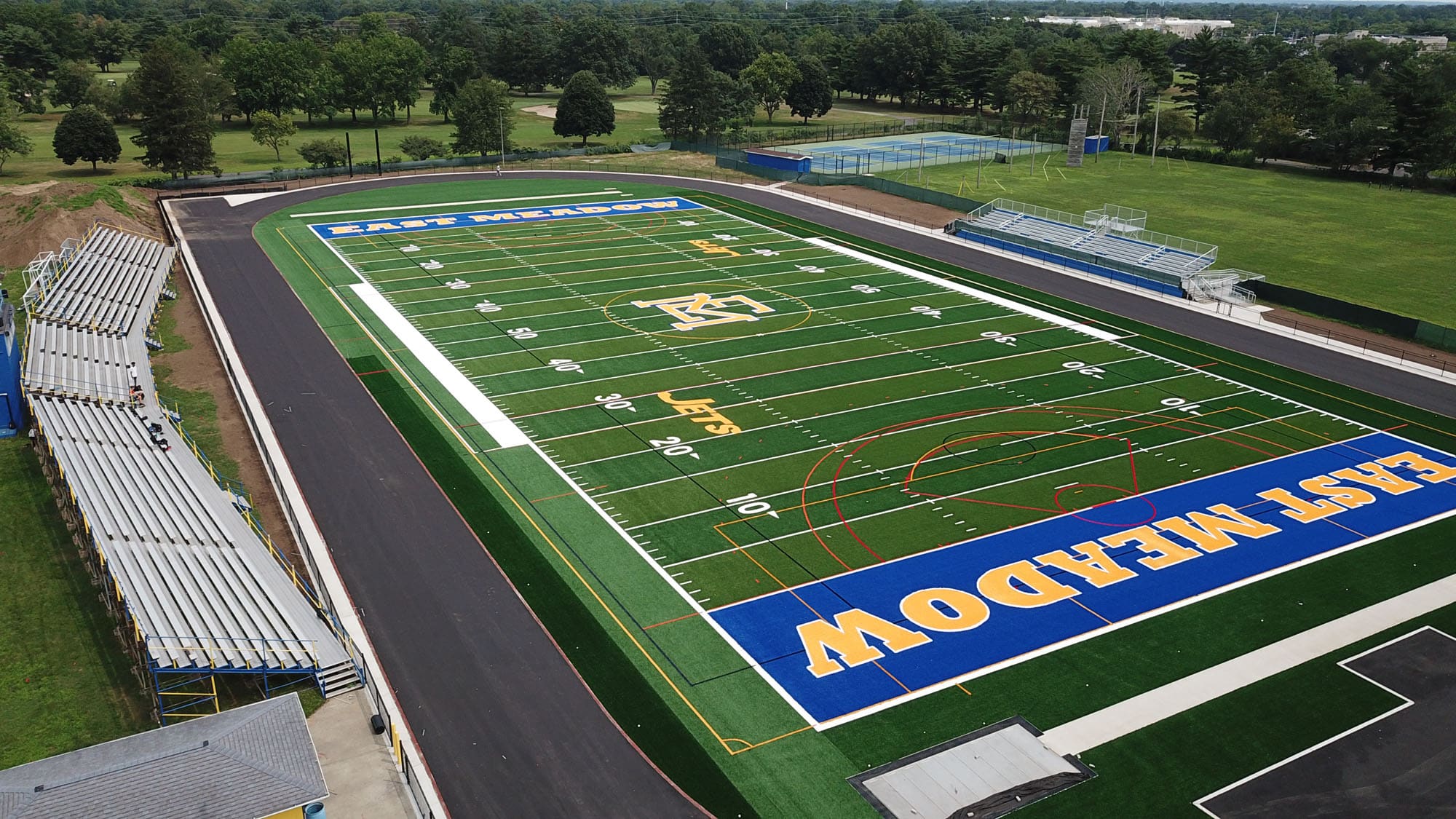 East Meadow Union Free School District recently received two new synthetic turf fields. East Meadow HS and WT Clark HS both had their stadium football fields converted from natural grass to state of the art artificial turf. Together LandTek installed over 180,000 sq.ft of synthetic turf. Both fields underwent extensive excavation and removal of the existing natural grass. LandTek then installed new custom drainage systems. New perimeter chain-link athletic fencing was added to protect the new facilities along with new concrete walkways. In addition to a new field East Meadow High School also received a resurface to their 6 lane running track.