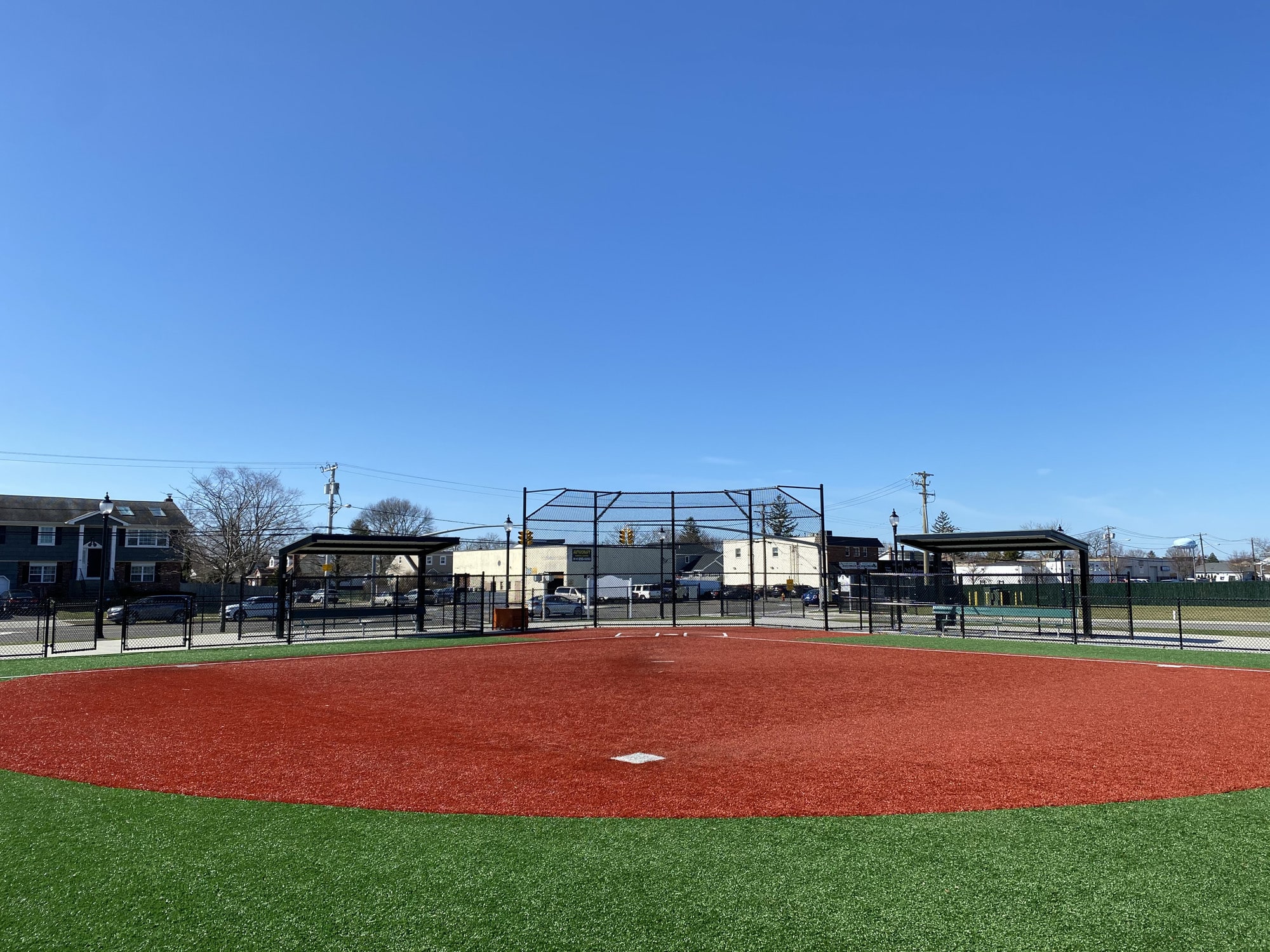 The LandTek Group® is proud to contribute to the most recent renovations to Ellsworth W. Allen Park in Farmingdale, NY. The 22.5 acre expansion was completed in 2020 and has been recognized by the American Society of Civil Engineers with the 2020 Quality of Life Award. The LandTek Group® installed new a irrigation system and a water main to connect the existing park to the newly constructed park. Using synthetic turf LandTek built softball & baseball infields and constructed a synthetic turf t-ball field. The build scope also included a multipurpose field with three inlaid different sized soccer field lines. All the fields were connected by concrete walkways and LandTek installed a new 30’ chain-link fencing that incorporated ball stop netting systems into the design. New sod and natural running tracks were added along with brick pavers around a newly built comfort station. Additional amities included new bleacher systems, backstops, batting cages, scoreboards, and bocce ball courts.
