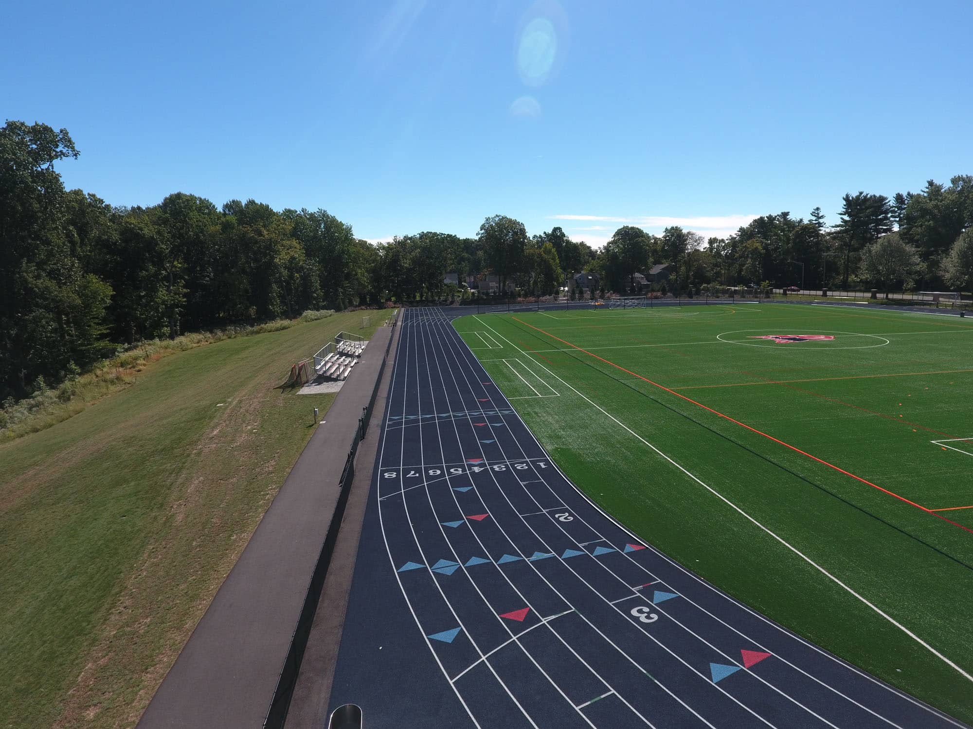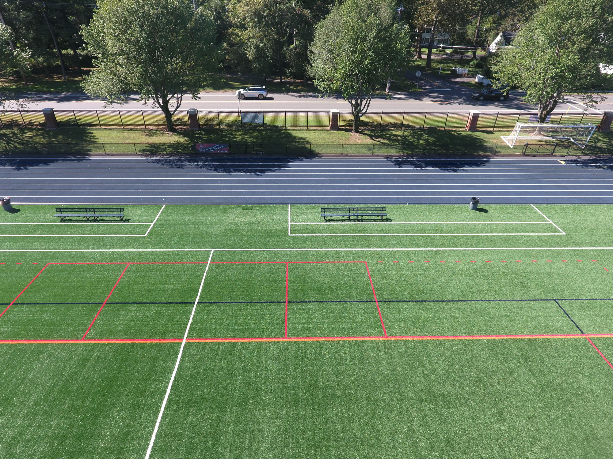The LandTek Group® recently completed the construction of The Elizabeth R. Hennessey Field at the Fairleigh Dickinson University in Teaneck, NJ. The multi-purpose turf field is designed for both men’s and women’s soccer, men’s and women’s Lacrosse, and field hockey. The synthetic turf field is surrounded by a custom blue 8 lane running track, new digital scoreboard, chain-link athletic fencing, and a ball stop netting system. LandTek also constructed a new asphalt parking a lot with concrete walking paths adjacent to the new athletic field.