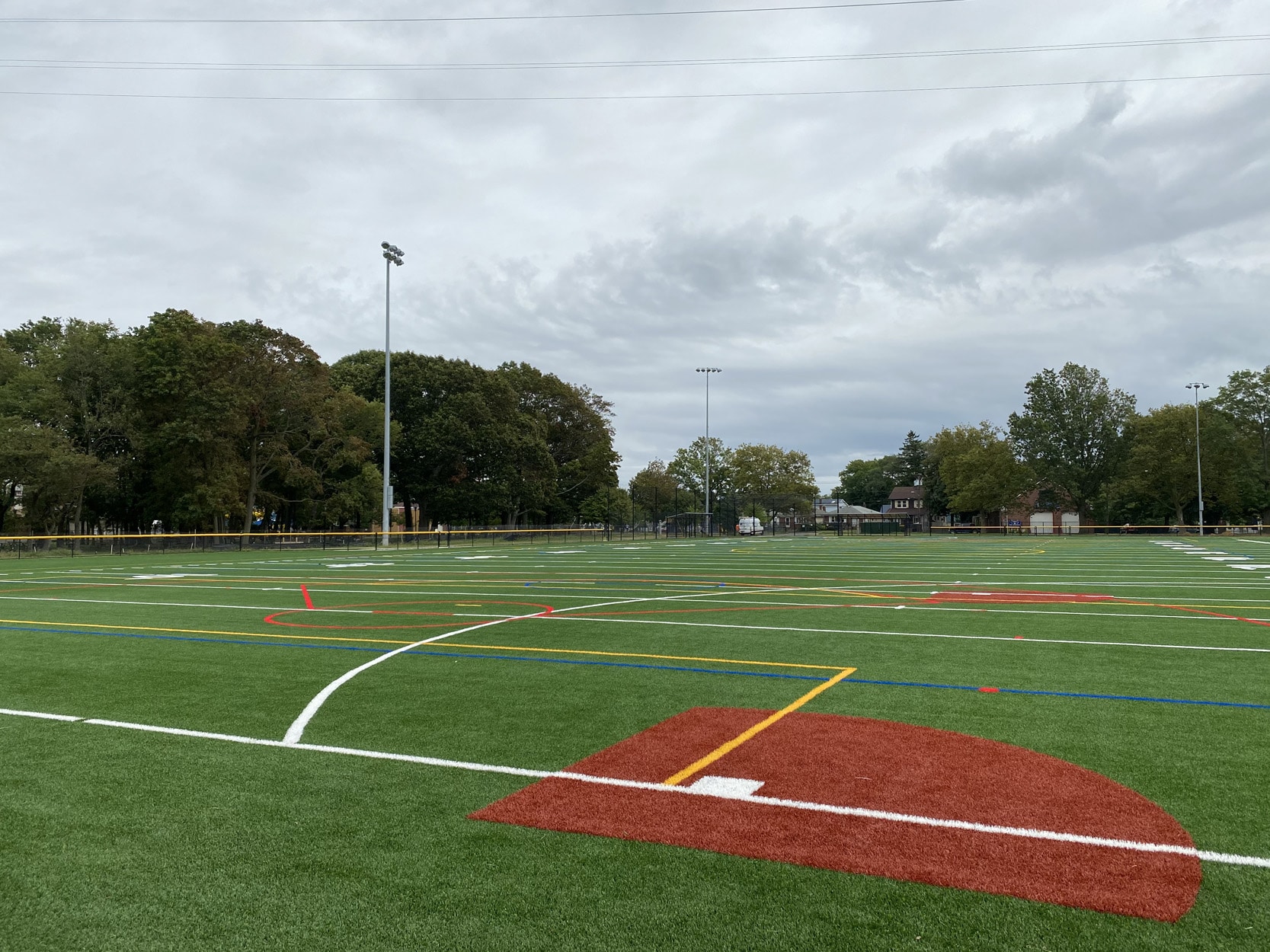 The LandTek Group® recently completed a conversion of a natural field to a multipurpose synthetic turf field for the Village of Lynbrook, New York. The scope of work included excavation, laser grading, and adding a new drainage system. LandTek installed 98,000 sq.ft of new synthetic turf and added new fencing, dugouts, and concrete walkways. The new multipurpose synthetic turf field includes playable areas for football, soccer, lacrosse, and baseball. A new state-of-the-art Musco lighting system was also included.