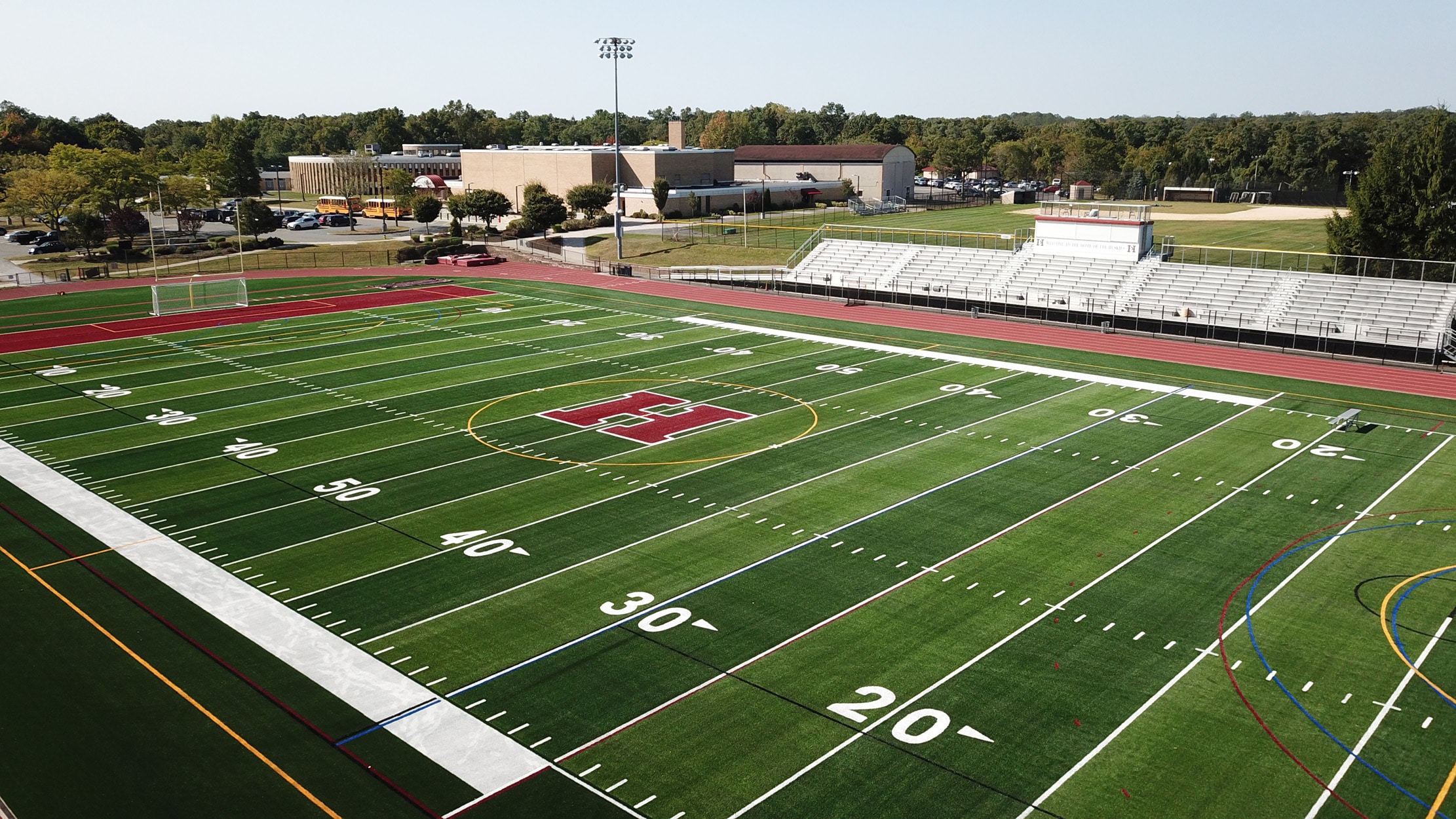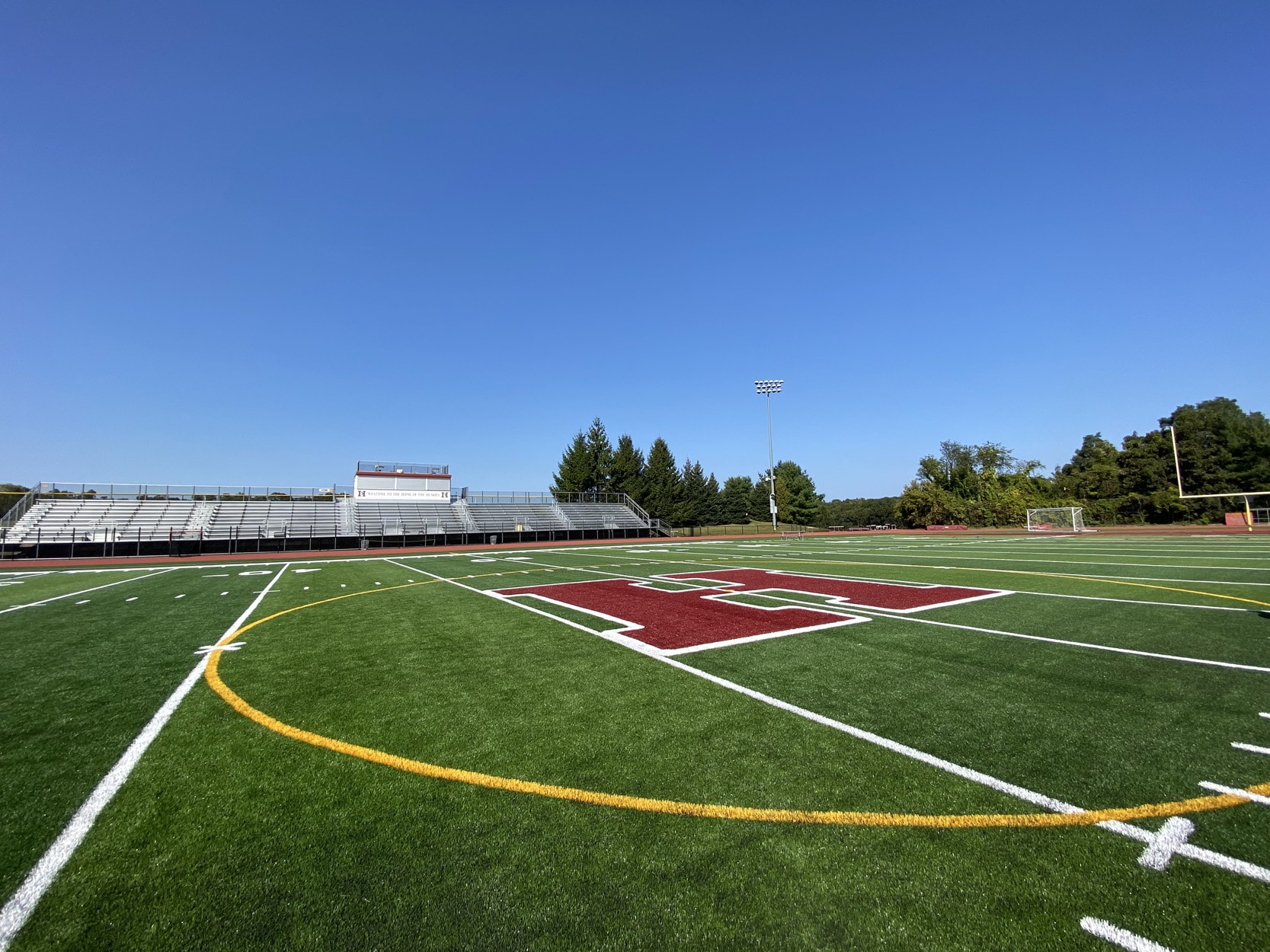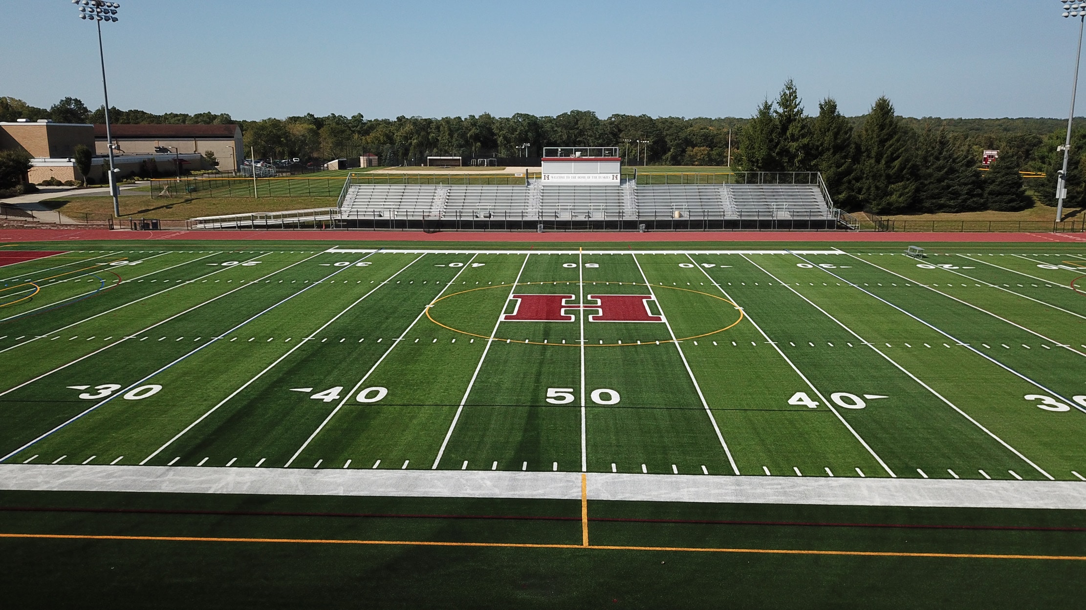 The LandTek Group® recently completed a field upgrade for Harrison High School. The synthetic multipurpose field was over ten years old and in need of improvements. Scope of work included, removal of existing turf, laser grading of sub base, and 100,000 Sq.ft synthetic turf installation. The upgraded new color endzones match the schools colors giving the field an enhanced school spirit.