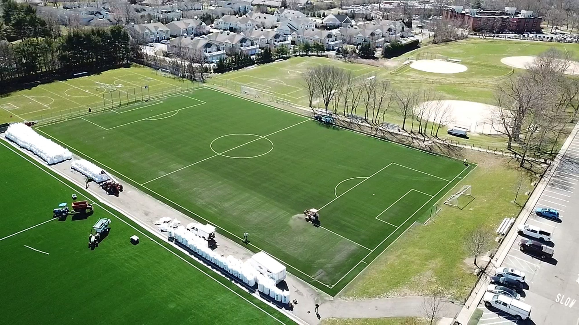 Moriches Park in St. James, NY received a fresh new look to their two synthetic soccer fields. The LandTek Group® removed the old turf and replaced 170,000 sq. ft. with new state-of-the-art synthetic turf from FieldTurf. During the replacement, LandTek laser graded leveled the field and added new infill.