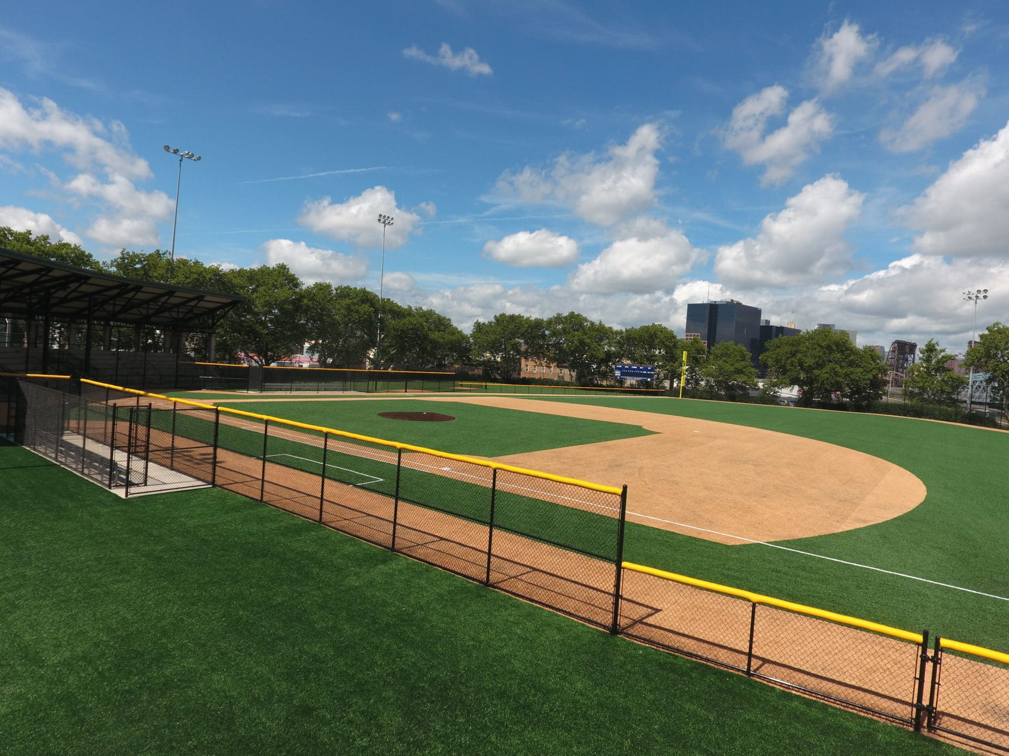 The LandTek Group® completed extensive renovations to Riverbank Park, located in the Ironbound District of Newark, NJ. The historic Essex County park’s baseball field was converted from its existing natural grass surface to a state-of-the-art synthetic turf ball field, with LandTek providing all construction, as well as turf installation and fencing.