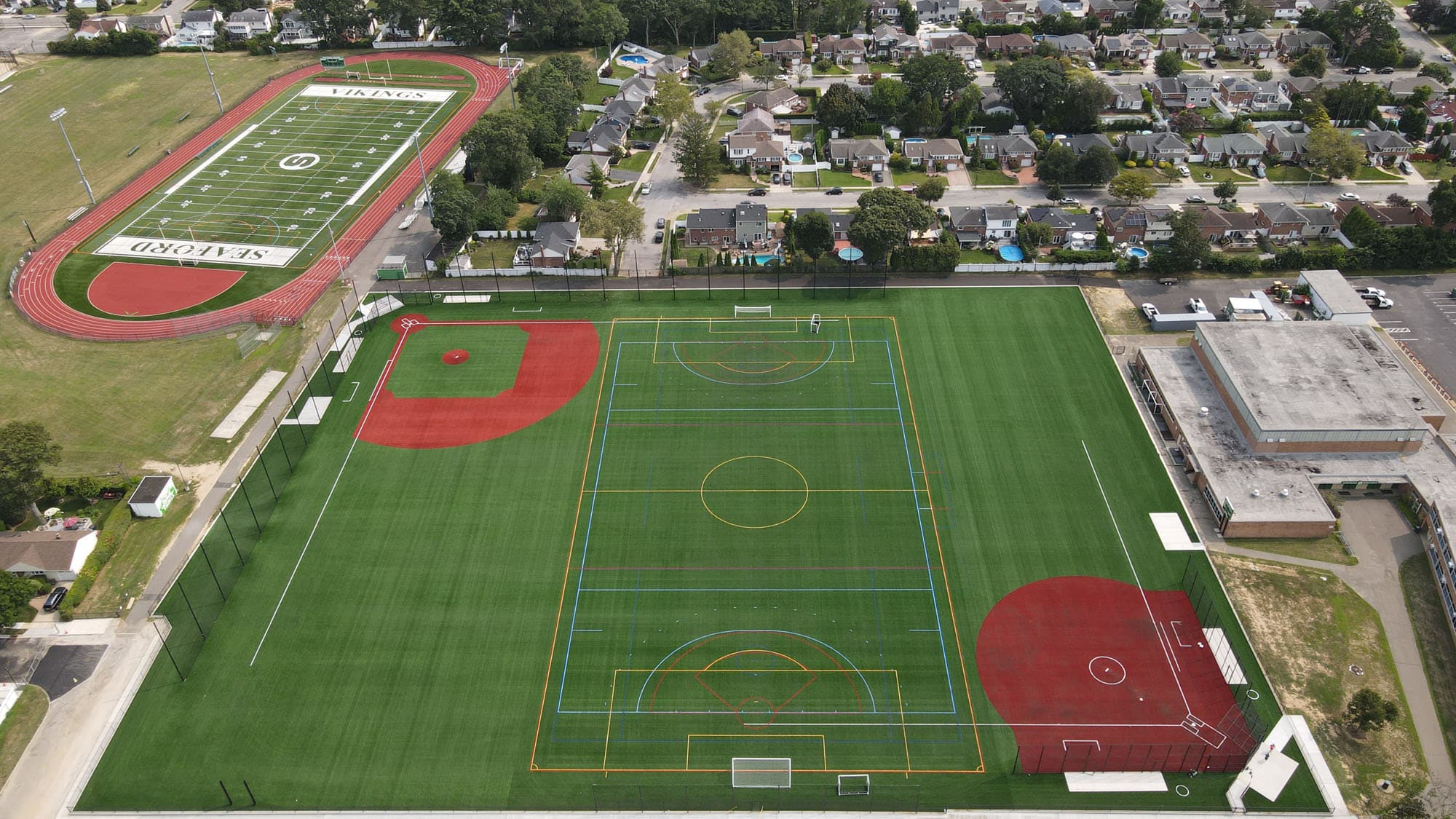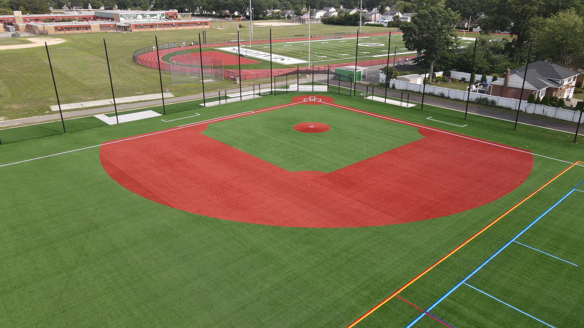 The LandTek Group® undertook a significant transformation of the natural grass baseball and softball fields at Seaford High School, converting it to a 219,000 square foot multipurpose turf field. The new facility is suitable for baseball, softball, soccer, field hockey and lacrosse and was reconfigured to allow for simultaneous baseball and softball play.