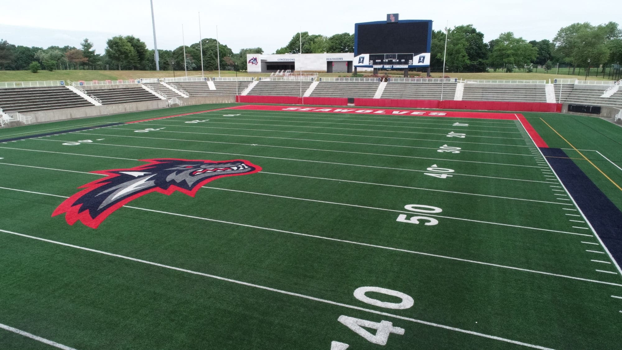 Kenneth P. LaValle Stadium is the home of the Stony Brook Seawolves football, men’s and women’s soccer, and men’s and women’s lacrosse teams. LandTek removed the existing synthetic turf playing surface at LaValle Stadium and replaced it with a new synthetic field featuring endzone and midfield logos.