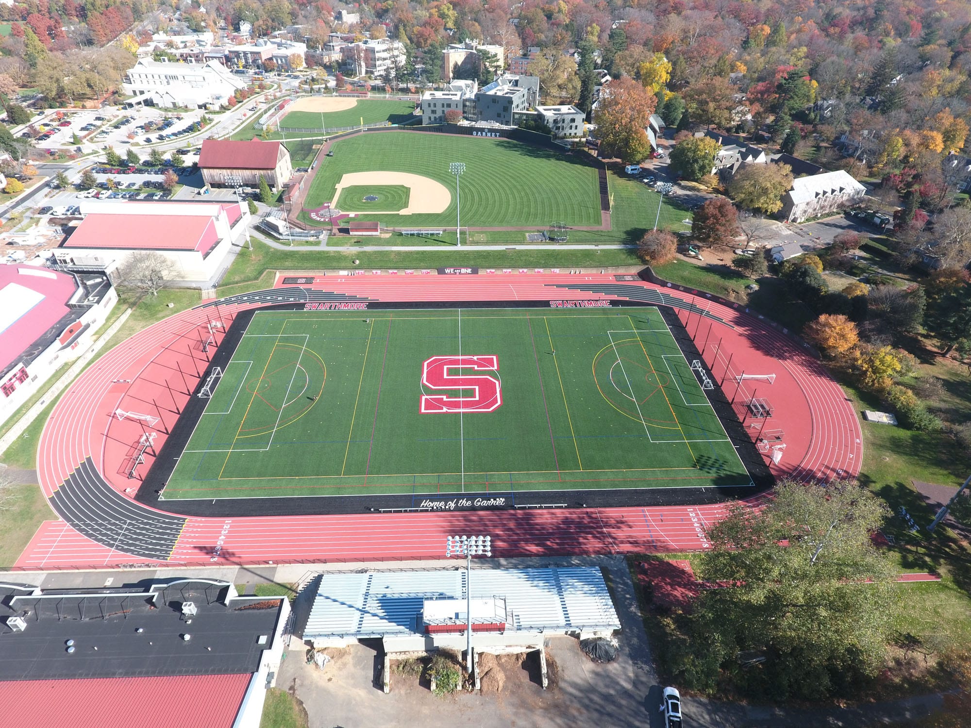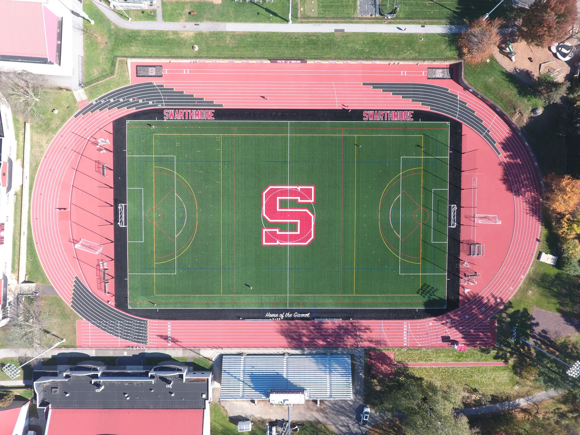 Swarthmore Colleges stadium was recently upgraded by The LandTek Group®. The existing turf field was removed as well as improvements and reconstruction were done to the existing stone base. A new state-of-the-art synthetic turf field was installed along with updated athletic netting systems. The track was milled, repaved and striped with a fresh new look.