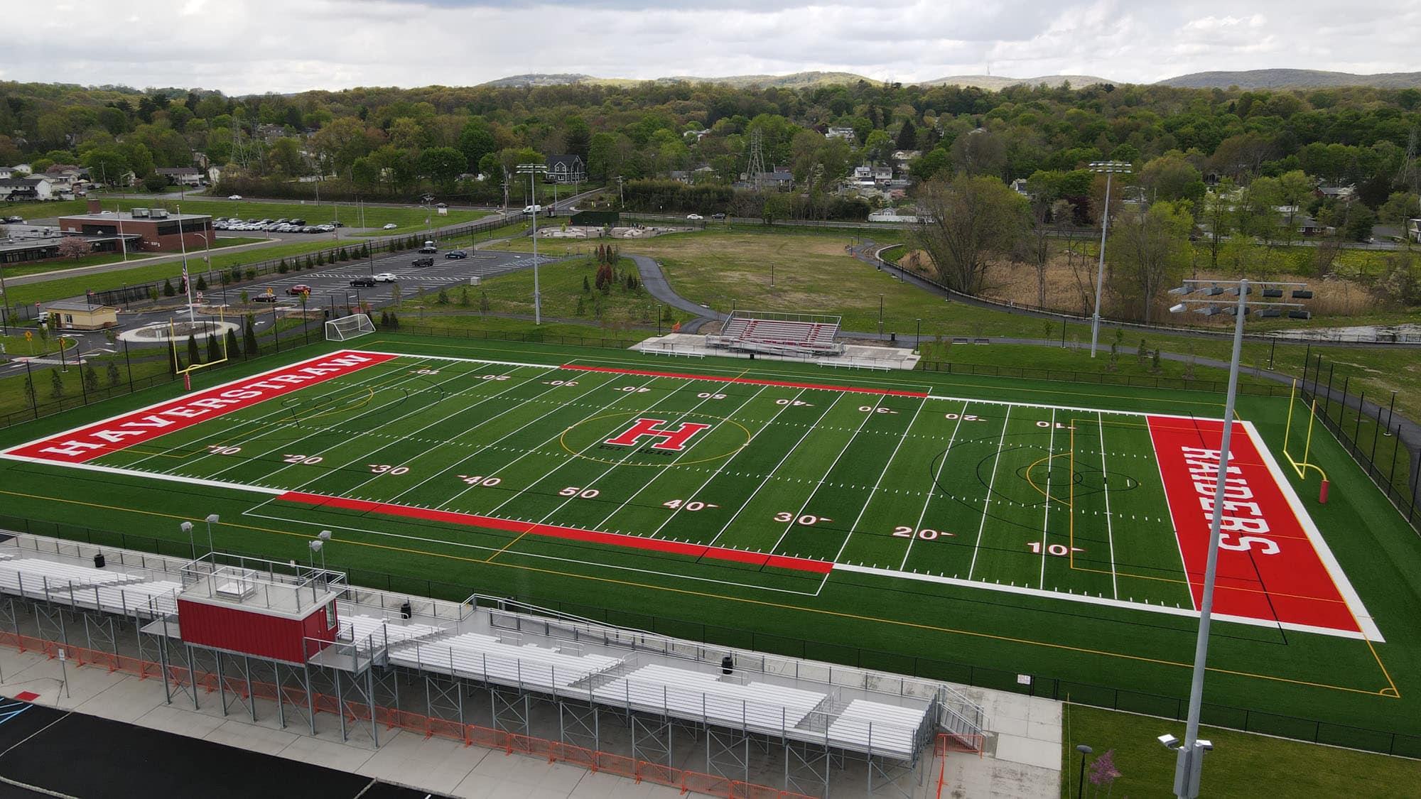 The LandTek Group® transformed part of a 25-acre woodland into a destination for athletes for the Town of Haverstraw. A versatile, multipurpose field was installed, suitable for football, soccer, and lacrosse. Additionally, new home and away bleachers, scoreboard, and press box were installed. The introduction of Challenger Field, a small baseball field designed for individuals with disabilities and compliant with ADA regulations, has generated enthusiasm. This inclusive space is used by residents of the town and the local school district.